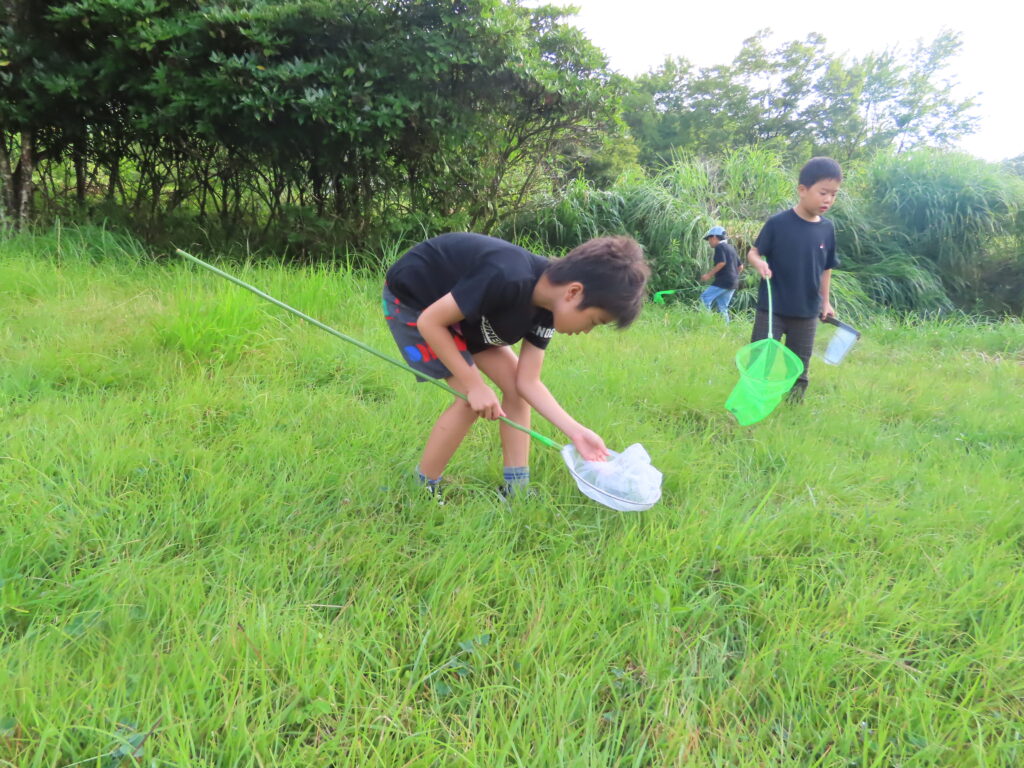 もたちは夢中になって虫を捕まえ、かごに入れ