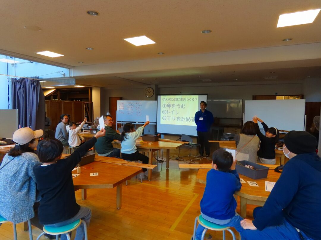 初めはクイズから。「なぜ巣をつくるのか」「いつ巣立つのか」などをクイズ形式で学びました。